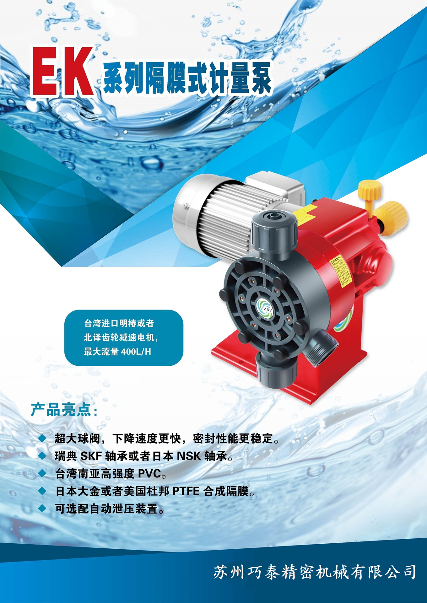 驅(qū)動方式:電機驅(qū)動,流量可達400L/H 工作條件:室內(nèi)/室外