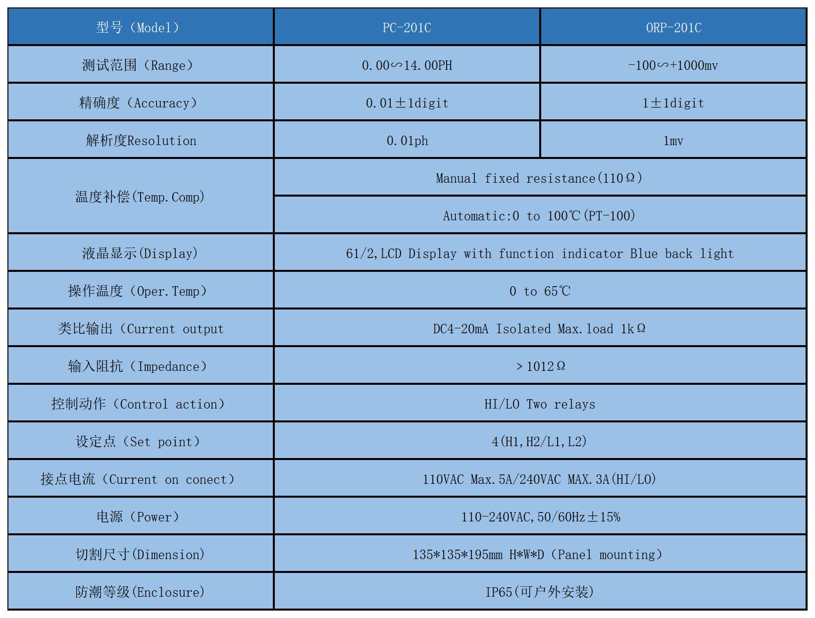 微電腦,單晶片處理,同時顯示(PH,℃)或(mV,℃)。