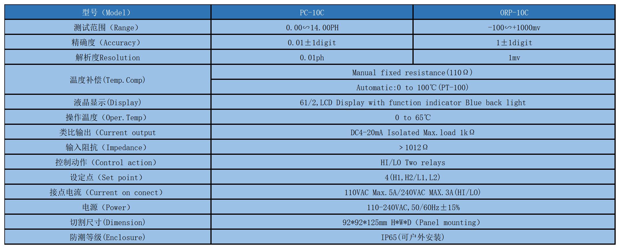 微電腦,單晶片處理,同時顯示(PH,℃)或(mV,℃)。