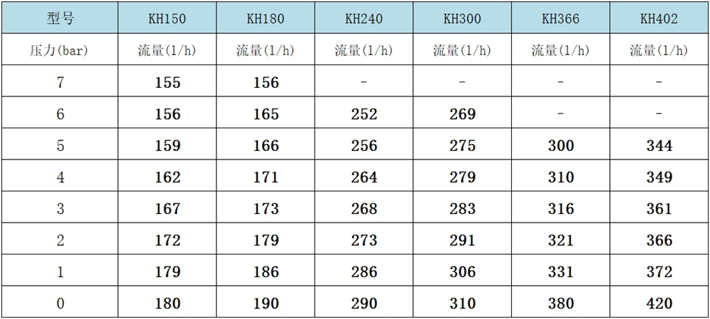 2、以上參數(shù),是使用常溫零壓力清水測試值;