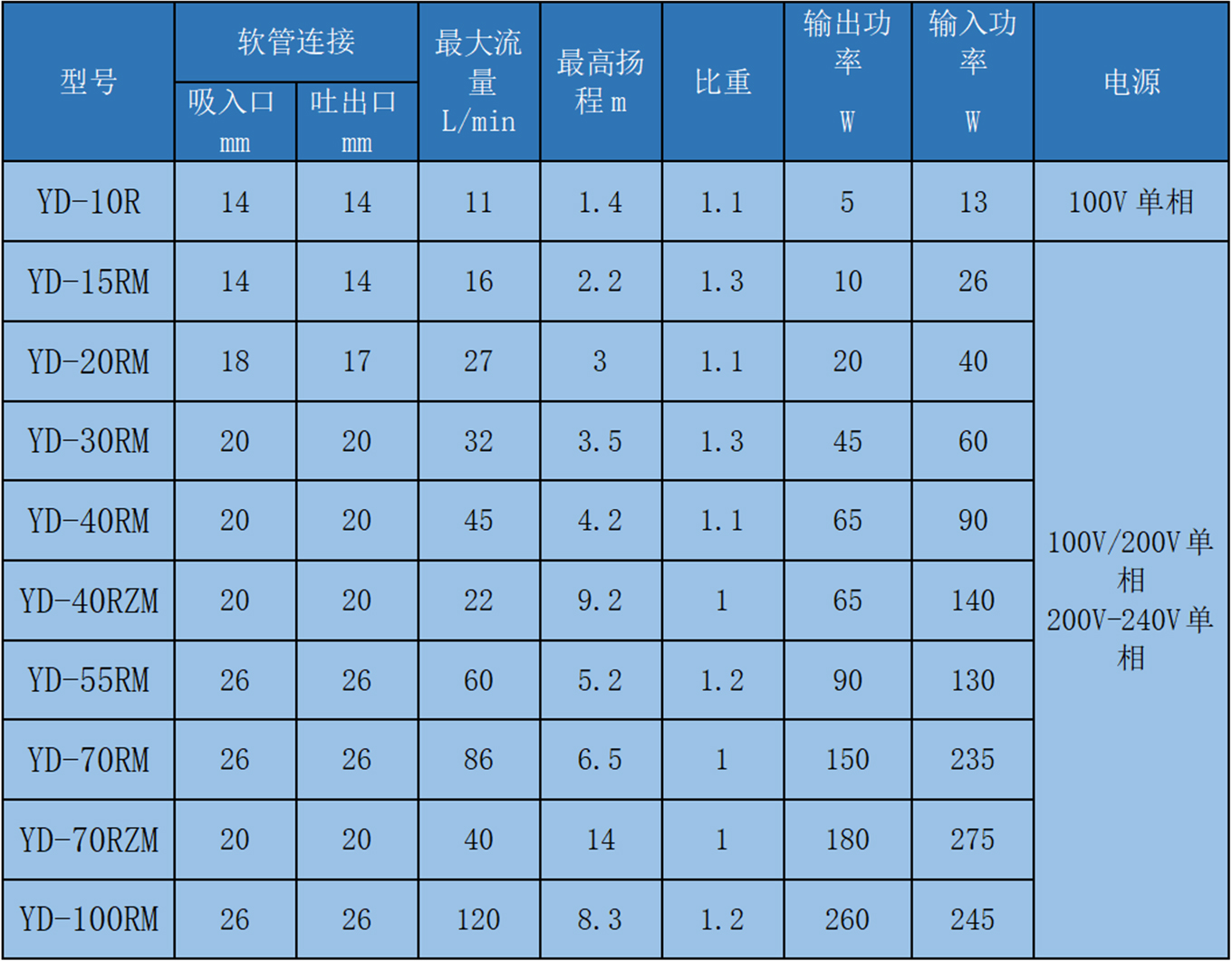 備注:YD-10R沒有螺紋連接型。